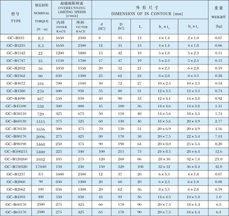 咸陽GC-B滾柱式單向離合器